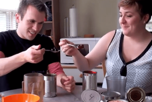 12 can goods were purchased and stripped of their labels. Then, one by one, Korey and I took turns drawing numbers out of a bowl and eating a spoonful of the contents of the can with the corresponding number. Hilarity and spit takes ensued. If you want to see the things Korey and I endured all for the sake of your entertainment, watch the video below.